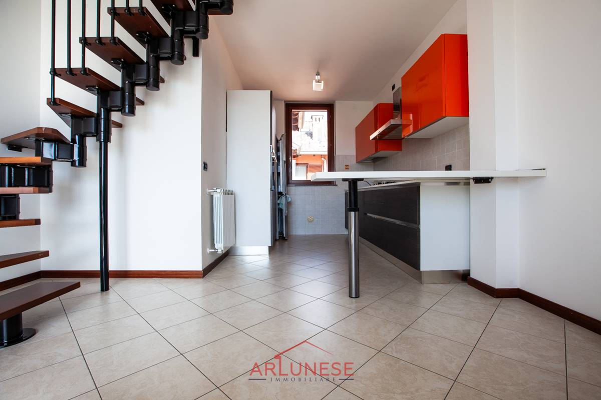 La cucina, a vista e parzialmente arredata, si affaccia su un ampio soggiorno, ideale per trascorrere piacevoli momenti in compagnia.