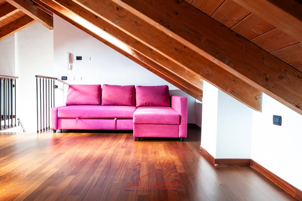La sua superficie totale è di 75 metri quadrati, disposto su due livelli, piano primo soggiorno con cucina a vista, camera matrimoniale e bagno al piano superiore mansarda open space con travi a vista.