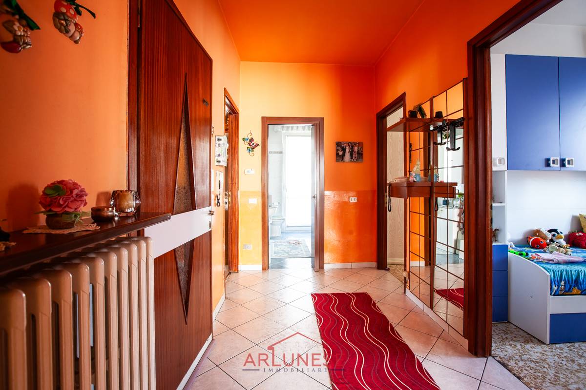 L'ingresso principale conduce direttamente al luminoso soggiorno, dotato di grandi finestre che permettono una buona illuminazione naturale.